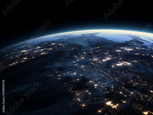 Obraz premium Earth at Night View From Space with City Lights Glowing