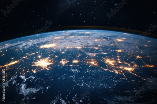 © Art Jabz, Obraz premium Earth at night with city lights visible from space.
