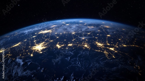 Fototapeta premium Earth at night with global connections lighting up the continents,...