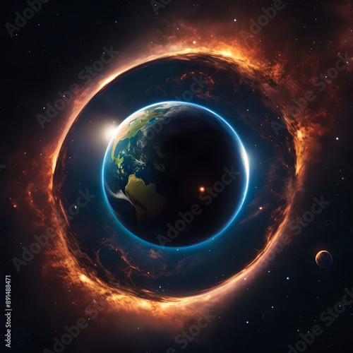 Fototapeta premium earth being swallowed by black hole