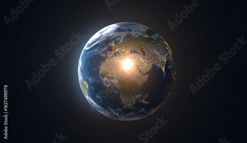 © Nusaibah, Fototapeta premium Earth, centered in space, bathed in sunlight