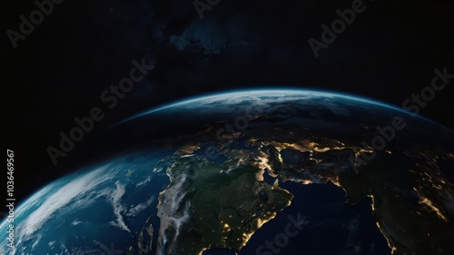 Obraz premium Earth, Civilization, Light, Glow, Radiation, Planet, Space, Universe, Continents, Land, Water, Seas, Cities