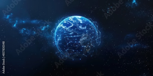 Fototapeta premium Earth Connected: A Digital Network Against the Cosmic Background