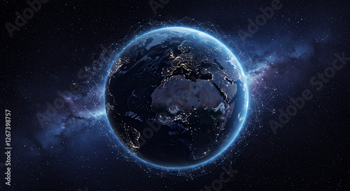 Obraz premium Earth Connected: Global Network, Space View, Tech Planet, Digital World,...