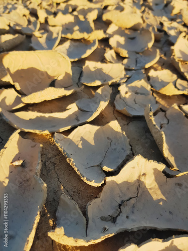 © Ardoun, Obraz premium Earth crack details of the ground close up due to dehydration