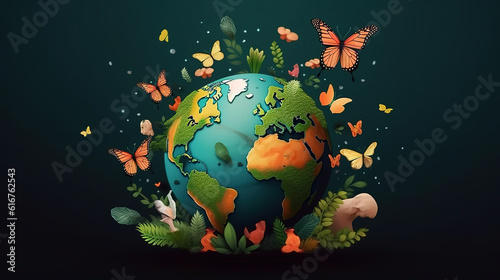 Naklejka premium Earth Day or World Environment Day concept. Save our Planet. Generative Ai