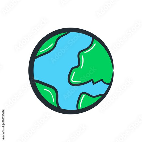© Rizkreativ, Obraz premium Earth doodle icon drawing illustration cartoon vector hand drawn style