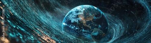 Obraz premium Earth Encased in a Blue Digital Vortex