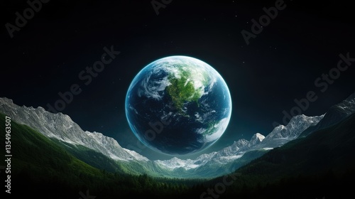 © danadesa, Obraz premium Earth from afar, nestled in a mountain valley