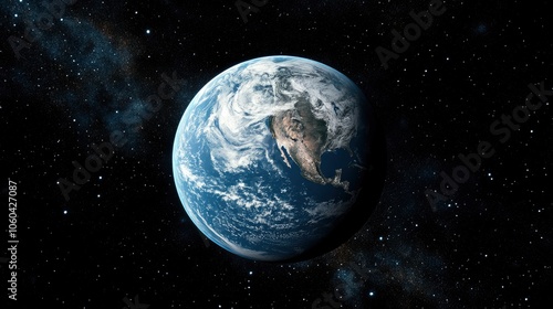 Fototapeta premium Earth From Space, A Blue Planet In The Dark Universe