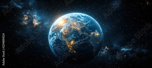 © tech, Obraz premium Earth from Space A Hyper Realistic View of Continents Oceans and Stars