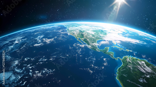 © xuan, Obraz premium Earth from Space: A Serene Blue and Green Orb with a Bright Sun