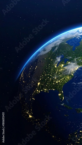 Fototapeta premium Earth from space at night, city lights illuminate North America.