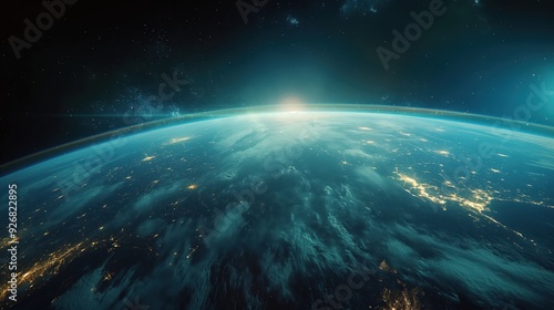 Obraz premium Earth from Space at Sunrise created by ai