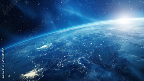 © gustav, Obraz premium Earth from Space at Sunrise created by ai