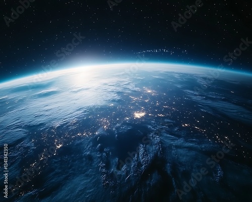 © bella, Fototapeta premium Earth from space, day and night with stars and city lights