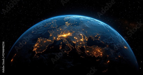 © Margarita, Obraz premium Earth from Space Europe Night View Political Borders City Lights 3D Illustration