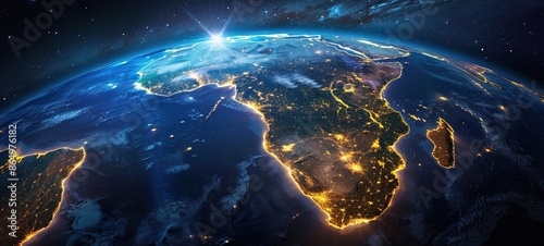 © MochSjamsul, Obraz premium Earth from space focusing on continent at night