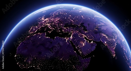 Obraz premium Earth From Space, Night View, Detailed.