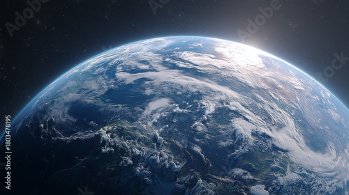 Obraz premium Earth from Space Overhead – Realistic Planet and Stars Background