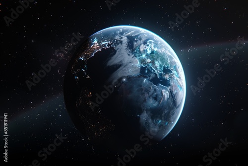 Obraz premium Earth From Space Showing continents And City Lights At Night