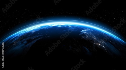 Fototapeta premium Earth from space showing continents and glowing light