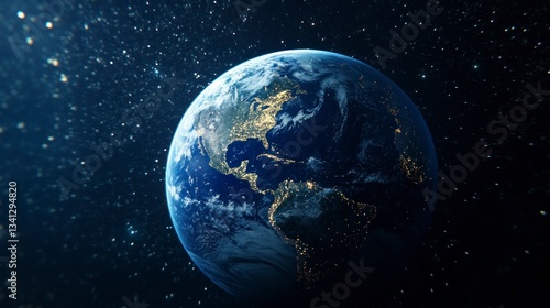 Obraz premium Earth From Space Shows North America at Night with Starfield