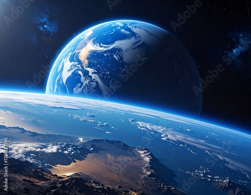 Obraz premium Earth From Space, Stunning View, Planets, Universe, Exploration.