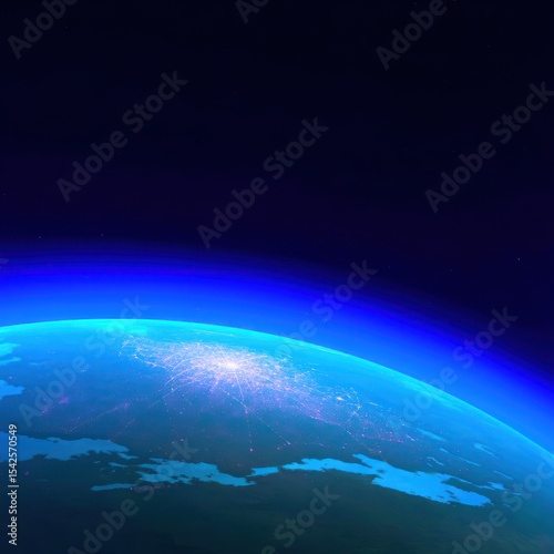 © Paino, Fototapeta premium Earth from space, vibrant blue glow
