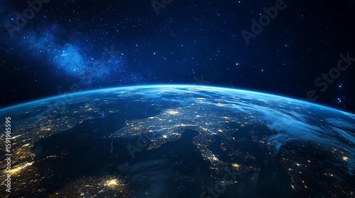 Fototapeta premium Earth From Space View at Night with City Lights and Stars