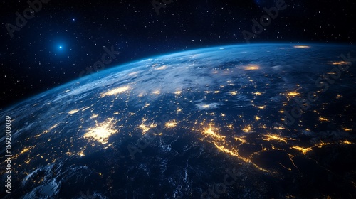 Fototapeta premium Earth From Space View with City Lights and Starry Sky
