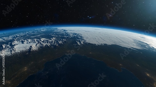 Obraz premium Earth From Space View with Snowy Mountains and Cloud Covering
