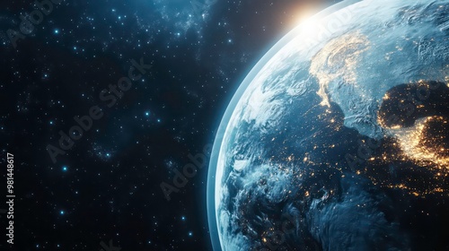 © sablengjago, Fototapeta premium Earth from space with a glowing sunrise.