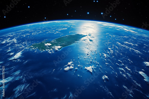 © watz, Obraz premium Earth from space with a sliver of land and white clouds.