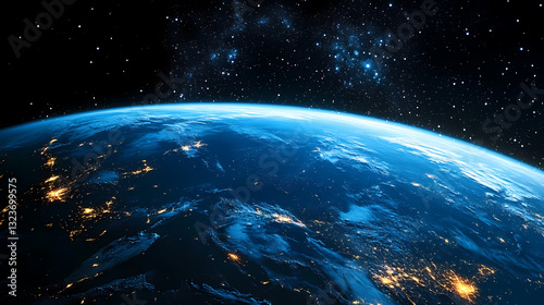 © jiejie, Fototapeta premium Earth from Space with Bright City Lights in the Night Sky