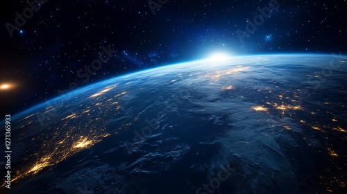 Obraz premium Earth from Space with Glowing City Lights