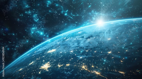 Obraz premium Earth from Space with Glowing Stars and Nebulas