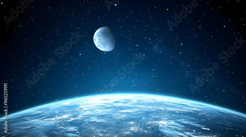 © sarinya, Fototapeta premium Earth From Space With Moon And Stars