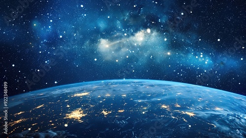 © 杰伦 周, Obraz premium Earth from Space with Starry Milky Way