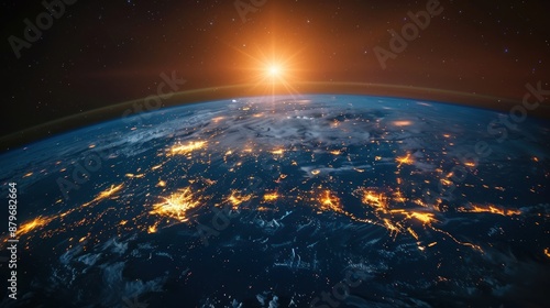 Obraz premium Earth From Space with Sun Rising