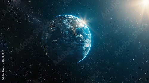 © Ariep, Obraz premium Earth From Space With Sunrays Shining on its Surface