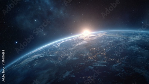 Obraz premium Earth from Space with Sunrise and Starry Night Sky