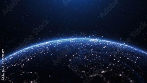 Fototapeta premium Earth, global network, city lights. Data visualization, information technology depicts worldwide communication, globalization, innovation.