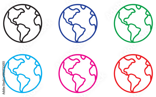Obraz premium earth globe and world map icon set, colorful outline symbols