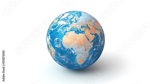 Fototapeta premium Earth Globe 3D Model: A 3D model of the Earth globe, isolated on a white background, represents global perspectives and world geography.
