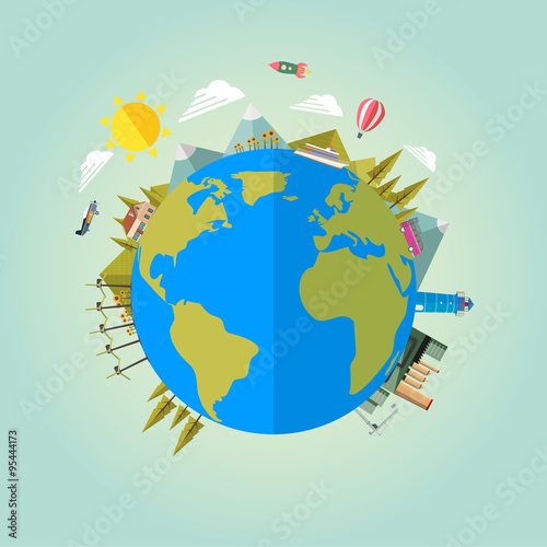 Naklejka premium Earth globe, eco background. Vector flat illustration