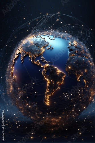 Fototapeta premium Earth globe enveloped by the worldwide internet web, technical concept