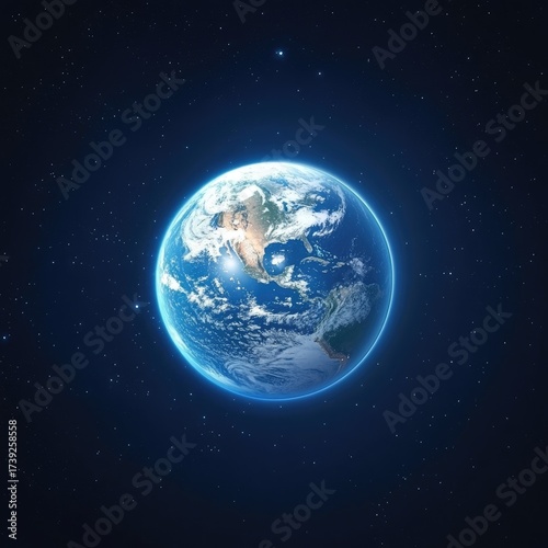 © belvA, Fototapeta premium Earth globe floating in dark blue starry space