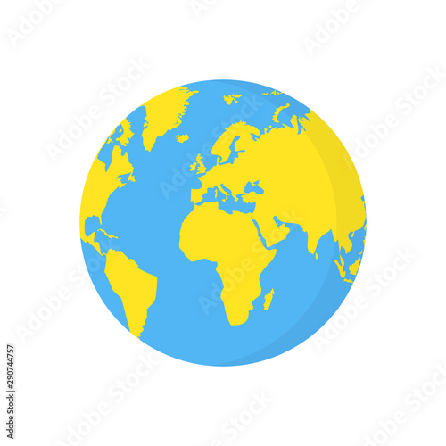 © Art Alex, Fototapeta premium Earth globe isolated on white background. Flat planet icon. Vector illustration.