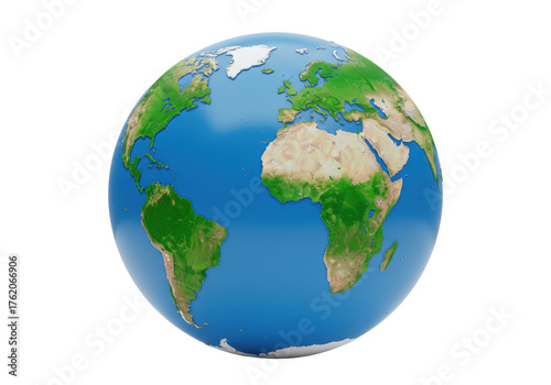 © Daniel, Fototapeta premium Earth globe isolated, showing continents and oceans, 3D rendering, planet model for geography, science, and education, PNG